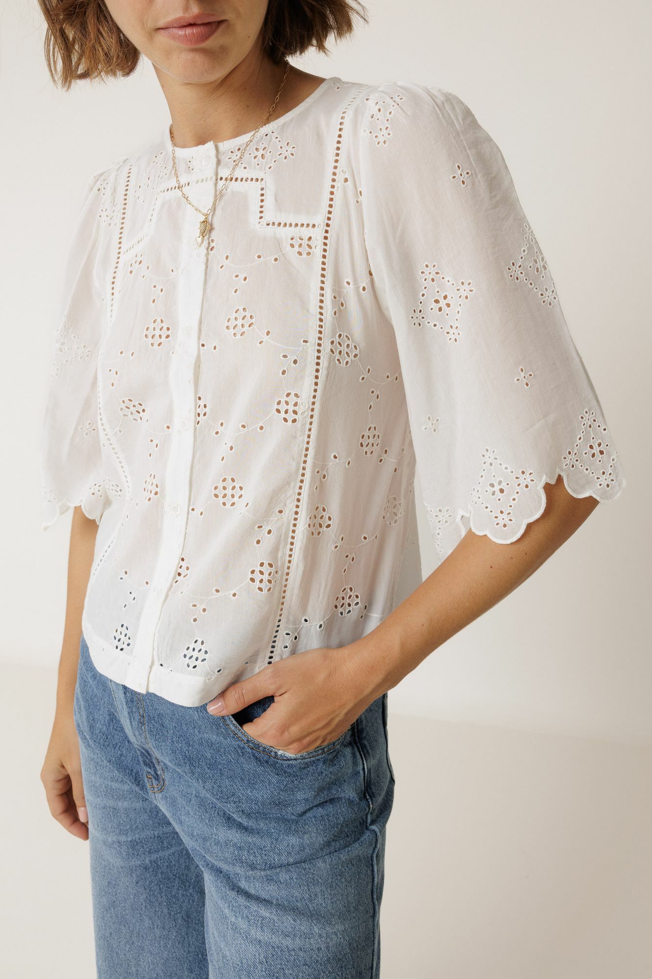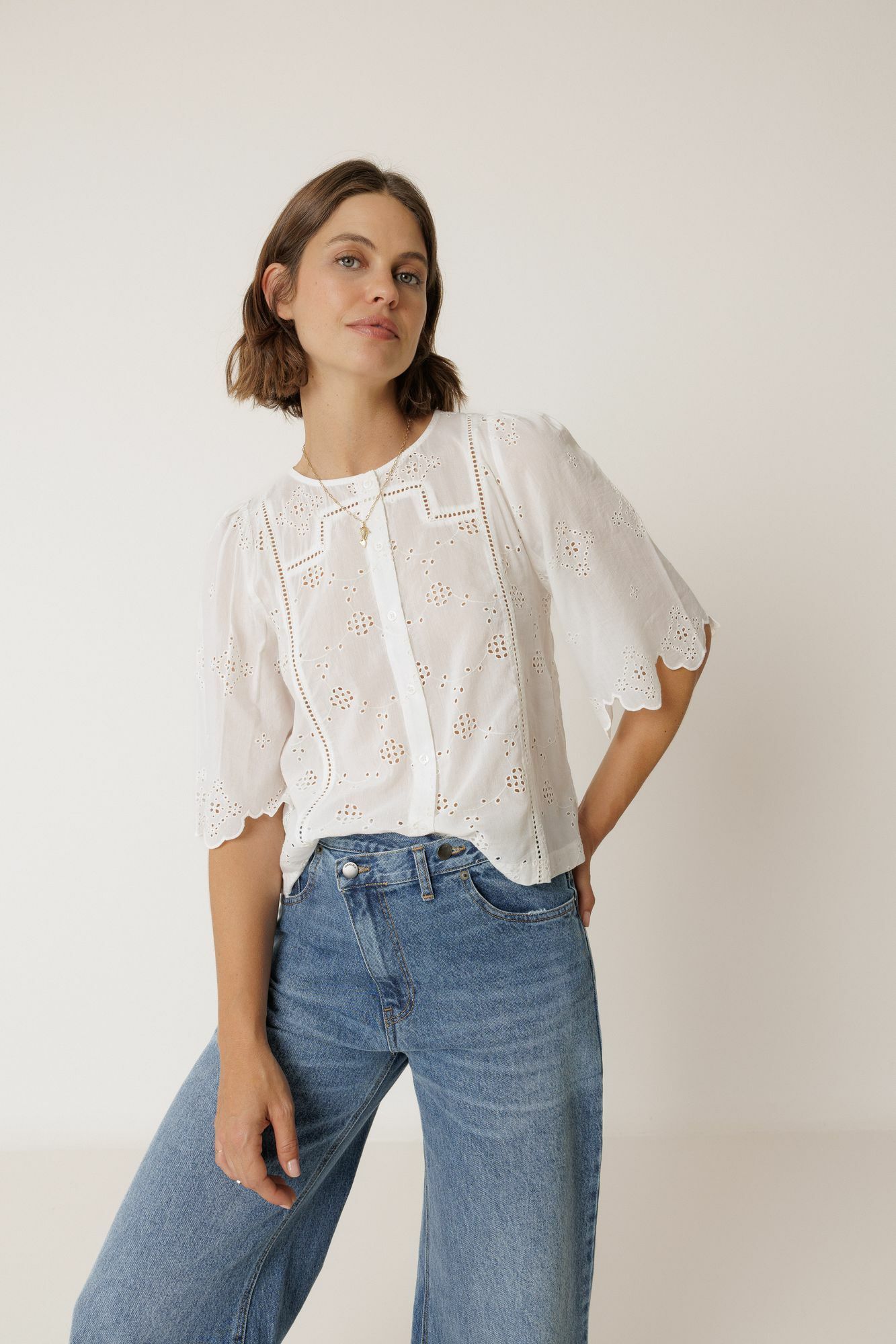 Camisa box bordado suizo